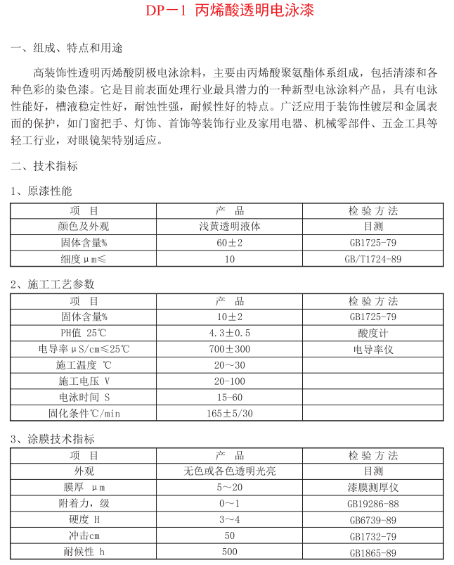 DP-1 丙烯酸透明电泳漆