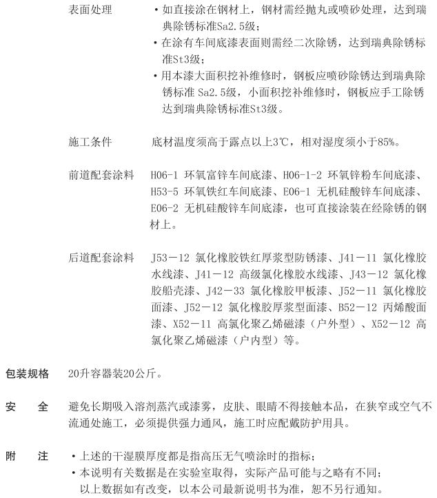 J53-11 氯化橡胶铝粉厚浆型防锈漆