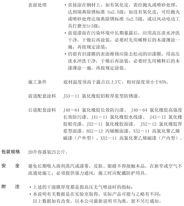 J53-12 氯化橡胶铁红厚浆型防锈漆